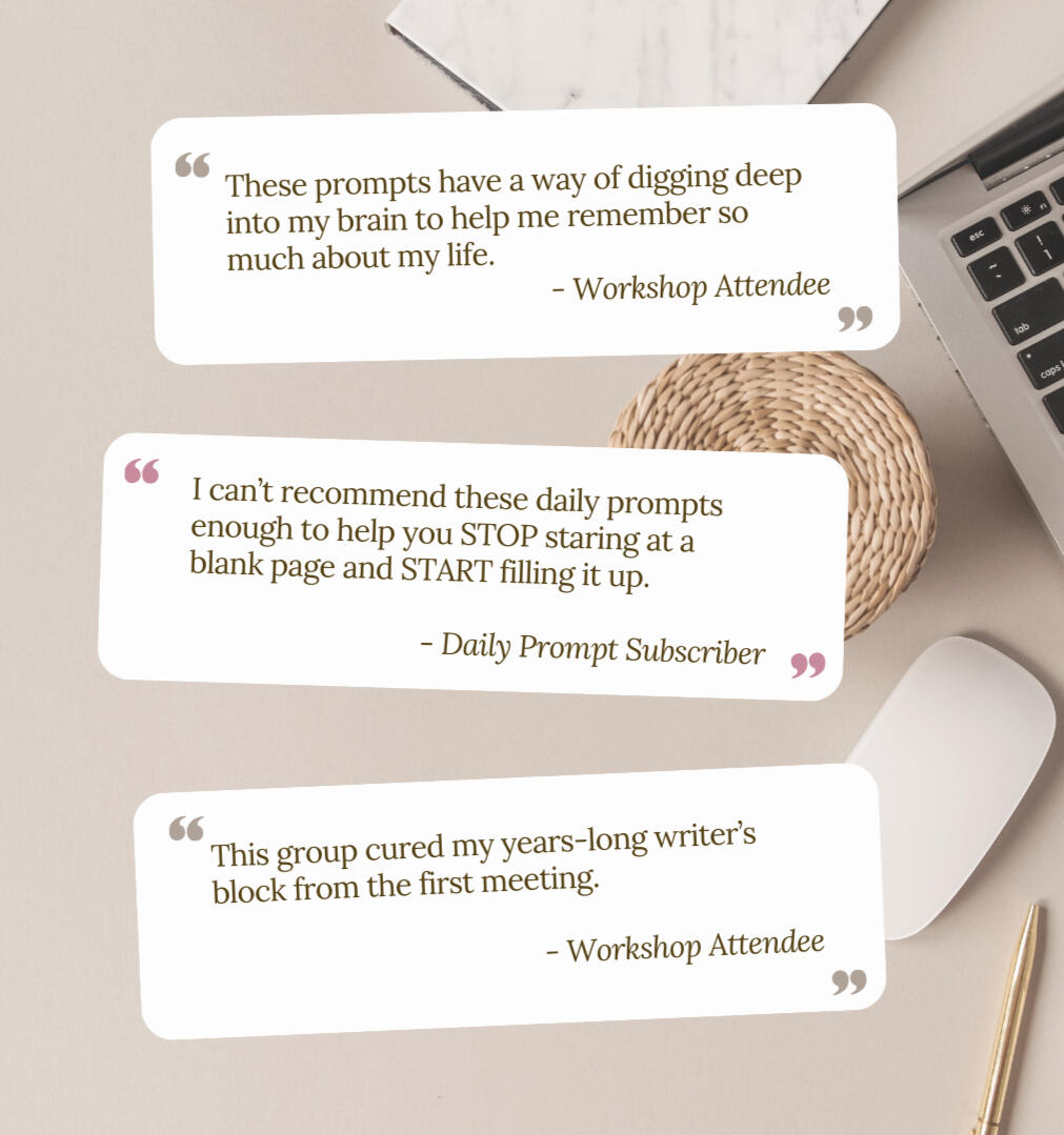 If the daily prompts are the spark, this is the flame.Our We Write Together community is a monthly subscription designed for writers who want to go deeper—through connection, conversation, and creative courage.Whether you're local or remote, you'll get access to exclusive group texts, extra prompts and encouragement, and access to our in-person sessions. You’ll also be invited to a live monthly Zoom workshop and get first dibs on new events, retreats, and offerings.